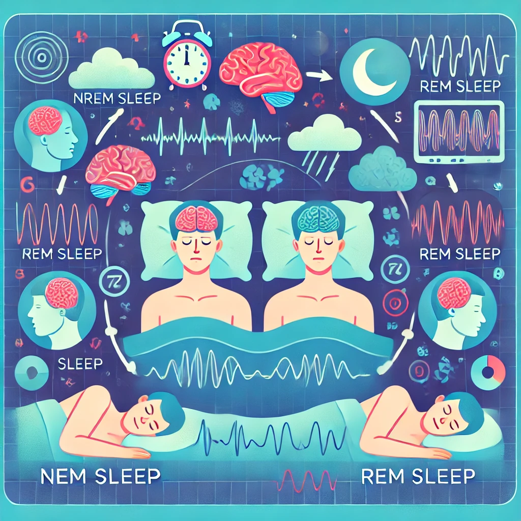우리는 잠을 잘 때 단순히 “자는 것”이 아니라 여러 단계에 걸쳐 변화하는 복잡한 과정 속에 있다. 수면은 REM(빠른 안구운동) 수면과 NREM(비REM) 수면으로 나뉘며, 총 4단계로 구분된다.